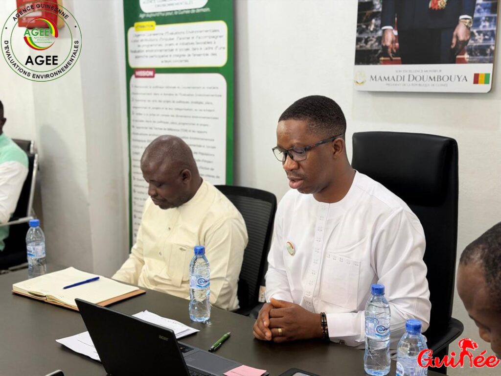 Conakry, mercredi 7 avril 2026 – Une séance de présentation du niveau de mise en œuvre des recommandations issues des missions de contrôle de conformité environnementale s’est tenue ce mercredi 7 avril 2026 dans la salle de réunion de l’Agence Guinéenne d’Évaluations Environnementales (AGEE). La rencontre portait sur les suites données aux constats de pollution liés aux activités de la Société RUSAL FRIGUIA.